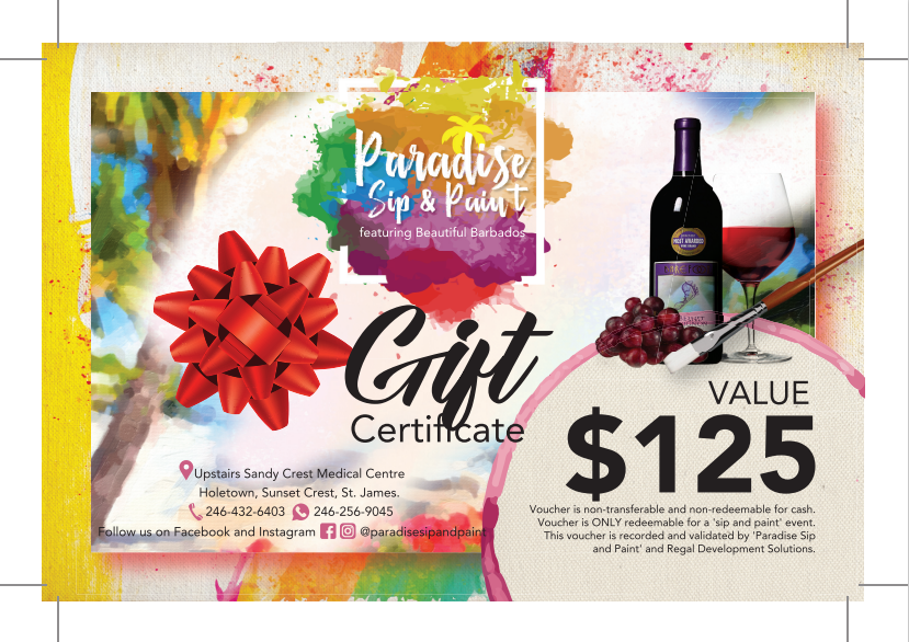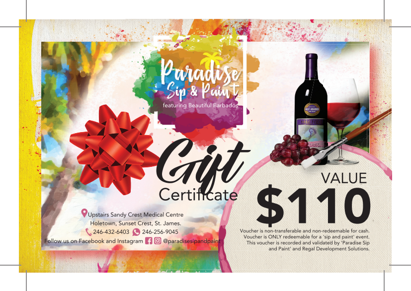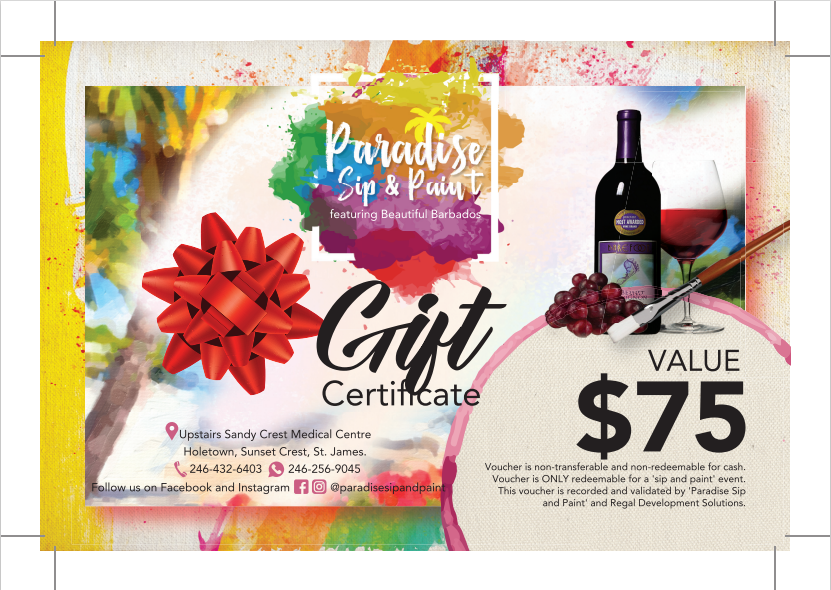 For bookings and more information visit us on social media @paradisesipandpaint or call us at 246-432-6403.